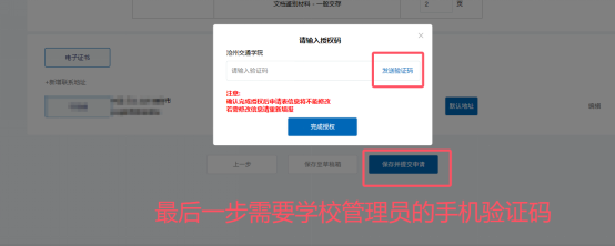 4.输入学校管理员的手机验证码。通常需要联系学校科研处,获得该验证码。